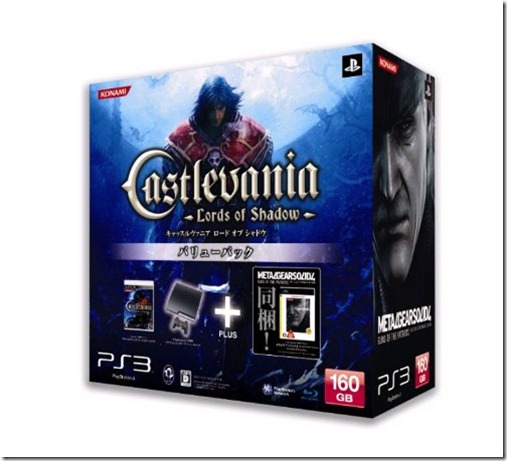 Called the “Castlevania: Lord of Shadow Value Pack,” the bundle includes Lords of Shadow, a 160 GB PS3 and a “PS3 The Best” copy of Metal Gear Solid 4 for 37,981 yen.
