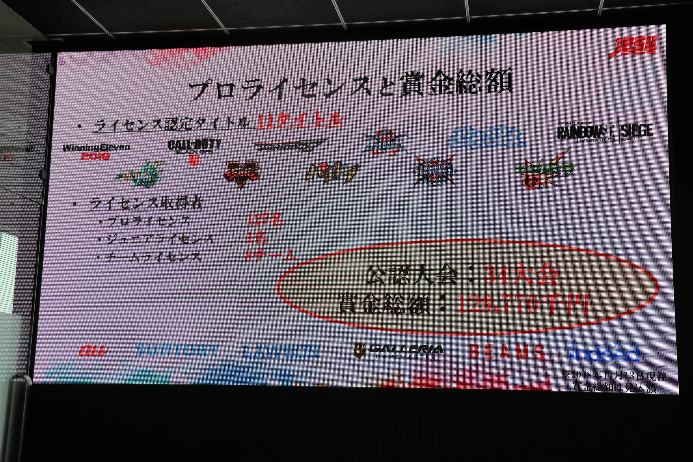 JeSU also went over some facts regarding growth in eSports in the year since the organization’s inception. 127 players have received pro licenses, one Junior License has been approved, and eight teams have gotten team licenses. These recognized players have gone on to compete in 34 different competitions over recognized titles like Guilty Gear Xrd Rev 2, Call of Duty: Black Ops 4, Puzzle & Dragons, Puyo Puyo, and Rainbow Six: Siege. (You can read more about licenses in our previous report here.)