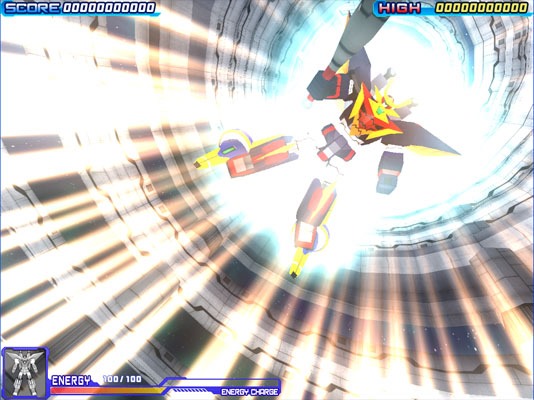 Apparently, using this counter-shot technique is vital to overcoming the bigger boss enemies across the game’s four stages. Speaking of which, these stages switch perspectives dynamically throughout, from top-down to putting the camera behind the mech as it moves through space stations, asteroid fields, and bright skies of deserted planets. You can see a footage of Dagekio in action above. More screenshots from the game are below.