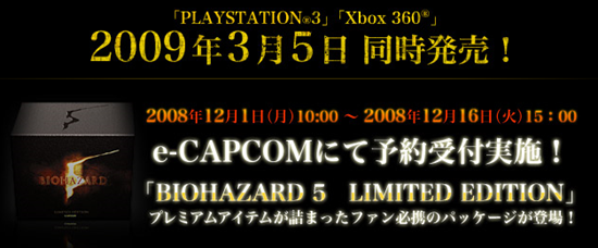 Japan gets to enjoy co-op zombie shooting about a week earlier since Resident Evil 5 has been rescheduled to come out on March 5. Since Resident Evil 5 comes out in North America on March 13 there isn’t much incentive to import. On December 5th (the marketing department must love connecting Resident Evil 5 with the number 5…) Japan gets a first taste of Resident Evil 5 outside of Tokyo Game Show from a downloadable demo distributed on the Xbox Live Marketplace. Like all demos on Xbox Live the Resident Evil 5 demo will only be available to gold members on that date. Everyone holding a free silver Xbox Live account registered in Japan will be able to get the demo a week later.