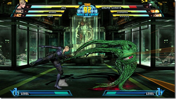 Marvel vs. Capcom 3 also has tentacles. Shuma Gorath has those covered. Both Shuma Gorath and Jill will be available as downloadable content after Marvel vs. Capcom 3 releases. We’ll have more details on this front as Capcom reveal them, but for now, we do know that buying the special edition of the game will grant you a free download voucher for both characters.