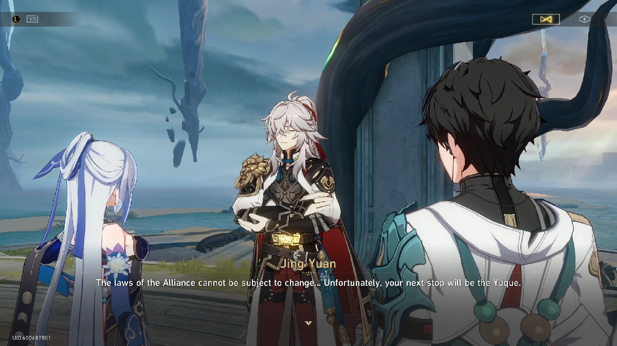 This neatly sets up which Xianzhous the Astral Express crew will visit next, as well as providing a reason to do so. Jing Yuan also hints at Luocha’s real identity as Otto Apocalypse (maybe), which means we’ll definitely see more of this guy in the future. Hopefully, he won’t trigger Welt too much, though. It appears that, for the time being at least, we will no longer see any more of Jingliu or any of the Xianzhou Alliance (in a main story capacity) for a while.
