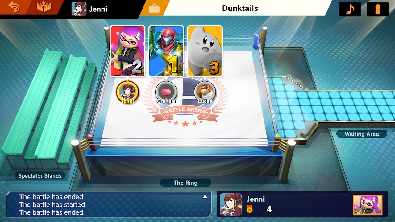While there are connectivity issues with Super Smash Bros. Ultimate, the Battle Arena in general feels like a sound idea. You can set custom rules, even determining items that can be used and whether the game will choose from people’s favorite stages or random stages. It is clearly organized, so you can see who is in the ring, who is waiting, and who is in line to play next. It even feels like there is an element of order, since you can determine who will be kicked after a match, due to their placement in the match.