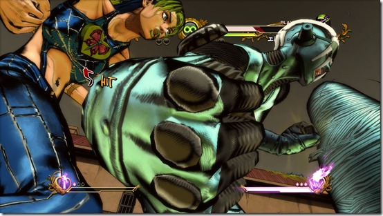 The controls on the Dual Shock 3 suffice. JoJo’s Bizarre Adventure: All Star Battle uses quarter-circle (236 and 214 in numpad notation), semi-circle (63214 or 412336), and dragon-punch motions (623 or 421) for special moves. However, I felt that I could have been that much more precise had I brought a joystick with me. There are no double quarter-circle commands (236236) here, but otherwise, fundamentally All Star Battle plays a lot like Street Fighter IV with an added sidestepping mechanic. Although the battle stages are 3D in nature, most of the fighting action is locked to a 2D plane.