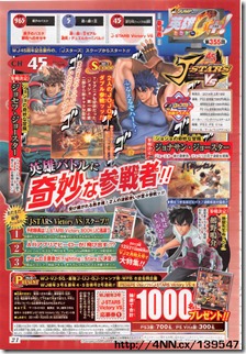 While JoJo’s Bizarre Adventure has its own fighting game, JoJo characters will also be present in J-Stars Victory Vs., the upcoming crossover anime fighter by Namco Bandai. A leak from the latest issue of Weekly Shounen Jump magazine (via: Anime News Network) reveals that multiple characters from JoJo’s Bizarre Adventure and one from the Jigoku Sensei Nube manga will be playable in J-Stars. On the JoJo side, Jonathan Joestar and Joseph Joestar will both be playable. Meanwhile, on the Nube side, Meisuke Nueno will be on the selectable roster as well. J-Stars Victory Vs. is in development for PlayStation 3 and Vita. Pre-ordering the game in Japan will net players a J-Stars Victory Book that contains information and visual pertaining to the Jump manga heroes over the years. Additionally, a free AR app for Vita will let you view the Jump heroes in your surroundings. J-Stars Victory Vs. is scheduled for release on March 19th, 2014 in Japan.