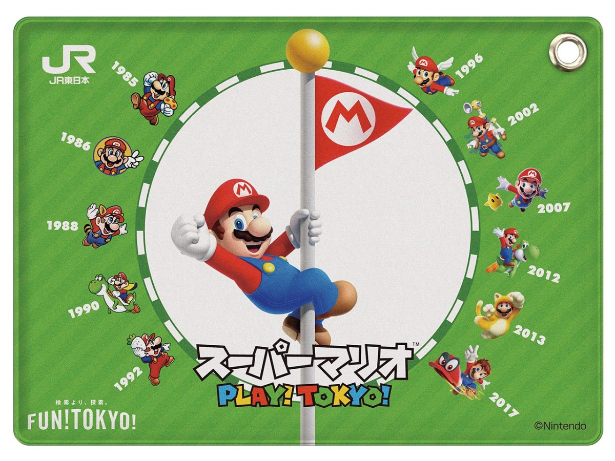 There will also be a digital version of the Super Mario 35th anniversary Tokyo events. The main website will have stamps from a selection of stations, which will change daily. In contrast to the physical event, the digital event will be held only from November 10 through December 17. Participants in either the physical or digital event will have a chance to win a limited edition JR East Super Mario pass case for their IC cards. IC Cards are used as digital payment to ride public transit in Japan. Here’s a mock-up of the pass’s design.