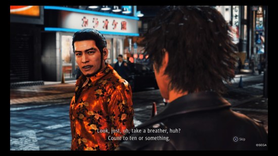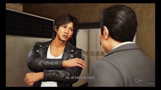 The two work in sync together throughout the first chapter of Judgment. When Yagami’s leads dry up, Kaito mentions a corrupt police officer he knows that might help with some inside information. Ahead of visiting an import location, Kaito cases it from the rooftops and acts as a lookout when Yagami is breaking into a restricted area. During a boss fight, you aren’t fighting alone. Kaito is right there with you, and the two of you can team up for special attacks. If Yagami has to get in there, Kaito will put himself in danger against what might seem like overwhelming odds to ensure his partner can do what needs to be done. He’s constantly providing muscle and extra surveillance in the first chapter, making it seem like he is Yagami’s equal in these early moments. But, the Yagami and Kaito aren’t just investigators working together. They’re more than coworkers. They’re brothers. During a visit to Mitsugu Matsugane, patriarch of the Tojo Clan Matsugane subsidiary family, Yagami says as much. Matsugane refers to the two of them as his sons, and Yagami refers to Kaito as his aniki. (This is essentially an older brother.) These two have known each other for years. With Kaito kicked out of the family, the first chapter helps show Yagami as providing a sense of purpose and place.