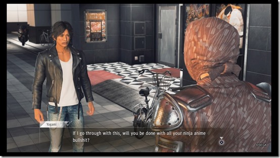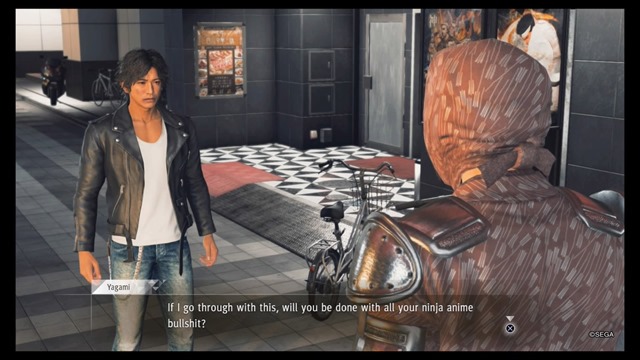 One of the more memorable optional events involves Ryan Acosta, an American in Japan who can become Yagami’s friend. He shows up for the first time in the third chapter of Judgment, and will be near the KJ Art building Yagami had to break into in the first chapter. He’s enthusiastic about becoming a real ninja, to the point where he’s climbing the walls when you first spot him with your drone. If Yagami goes to play darts at Theater Square’s Club Sega, Acosta’s saga continues. He’ll see you as a challenge (due to your mad “shuriken” skills) and try to best you. His whole storyline has this sense of misguided passion and enthusiasm that the Yakuza NPCs are great at showing. Plus, since Yagami is a little less likely to humor these sorts of people than Kiryu was, it means banter between the two can be an absolute delight.