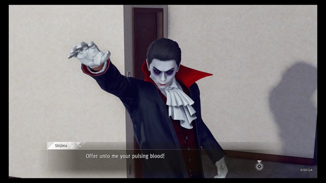 Judgment even uses the disguise system to make some of these extra stories super appealing. At Bar Tender in chapter three, a job opens up called “Interview With a Detective.” A famous celebrity with a vampiric edge (not Gackt) needs Yagami’s help. The media are chasing after Bram Sylvania III, so it is up to Yagami to act as a decoy. You have to don a disguise, get their attention, participate in a delightfully in-character interview, then give them the slip to complete the case. The look and responses really sell the whole thing, giving us a chance to see Yagami really go all-in with a setting.