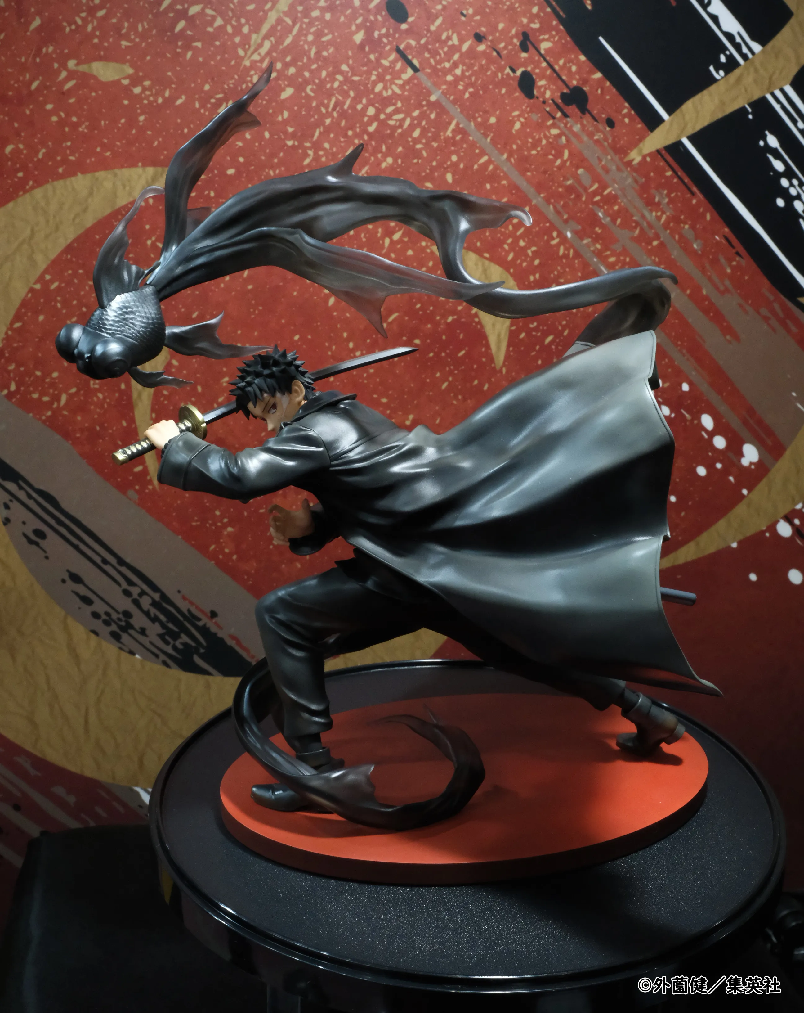 When you get this figure, it’s a static one with no extra parts and pieces. It shows Chihiro in the midst of attacking with the Enchanted Blade Enten. When he uses it, he can summon one of Kunishige’s three goldfish for a specific attack. In this instance, we see him calling upon Kuro.