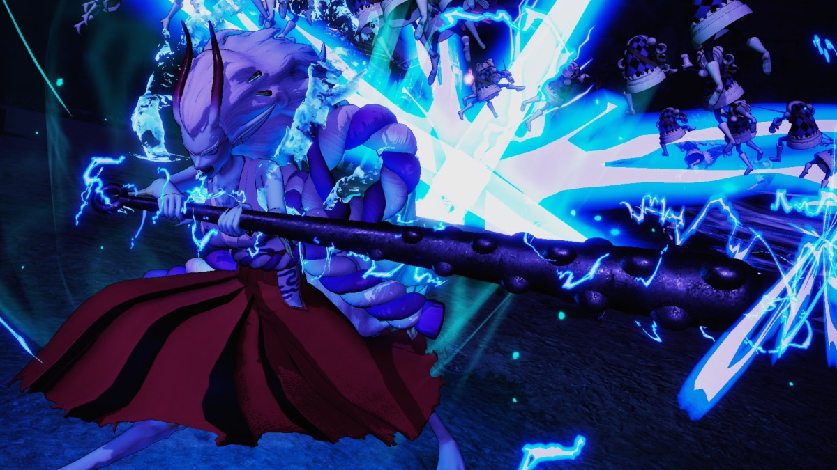 Bandai Namco revealed new One Piece Pirate Warriors 4 DLC characters with screenshots. When it announced Character Pass 2, it only showed Gear 5 Luffy and showed silhouettes of other characters like Uta. But we knew two more would join in The Battle of Onigashima Pack. Now we know Kaido and Yamato will be the other two joining One Piece Pirate Warriors 4 when that add-on drops in September 2023. First, here’s a look at Yamato in One Piece Pirate Warriors 4. Two screenshots showed various attacks. In one of them, he is wearing his mask as he attacks.