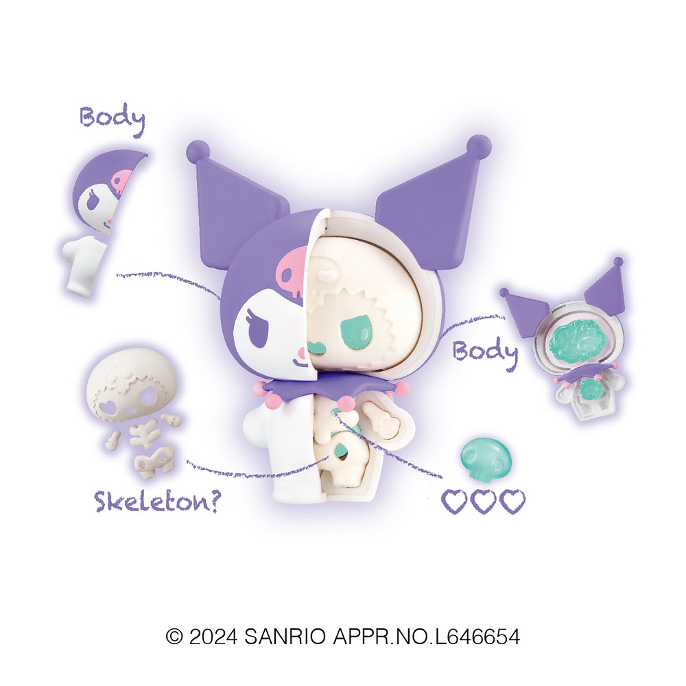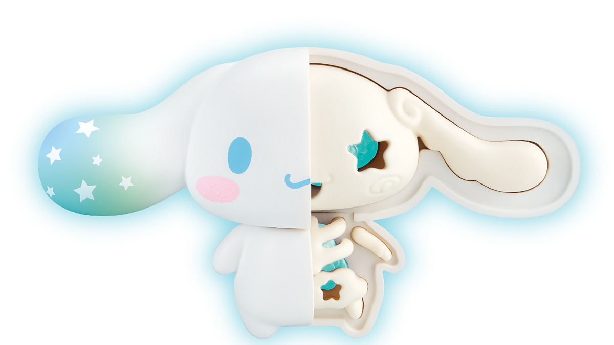 The KAITAI Fantasy set of toys from Megahouse show what’s inside of a mascot and lets people check out the characters’ skeletons. For example, we can see that the eye socket for Cinnamoroll is star-shaped in his skull, and there’s another star-shaped hole in his pelvic bone. There’s also some sort of swirl on the bone connecting his ear to his head, making it look like a cartoon wing.