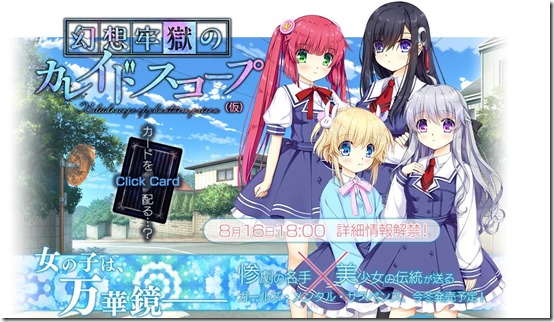 Entergram announced that Ryukishi07, known for writing Higurashi When They Cry, is teaming up with artist Itaru Hinoue for a new “Girls/Mental/Suspense” game called Kaleidoscope of Phantasm Prison for PS4, PS Vita, and Switch. The above is a look at the opening movie for Kaleidoscope of Phantasm Prison. The track is “Beautiful World” sung by Emily.