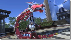 Kamen Rider Ryuki is characterized by his ability to summon the Mirror Monster Dragreder. When summoned, Dragreder can dash into enemies and also circle around Ryuki to protect him from enemies. Kamen Rider Hibiki