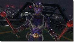 Kamen Rider Hibiki has the ability to form change into Kurenai form. This form provides an increase in attack power, changes his special attacks, and shortens the activation time. When using sound attacks you can mash the attack button for added sound and effects for more damage. Kamen Rider Den-O