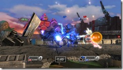 A new stage is in development for PlayStation All-Stars Battle Royale as well. The “Fearless” stage is a mash-up of Heavenly Sword and Wipeout. Battles on this stage start out atop a high column until stray gunfire from an anti-gravity race in the background causes the column to come crashing down and takes the fighters to the stage’s lower portion.