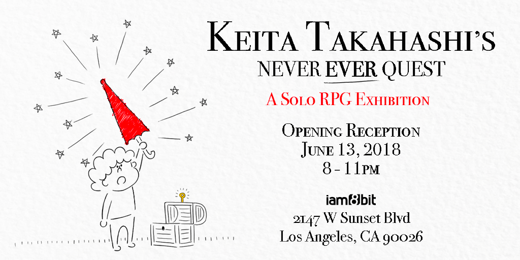 Keita Takahashi’s Never Ever Quest will be on display at iam8bit, 2147 W Sunset Blvd in Los Angeles, CA from June 13 to July 1, 2018. Interested guests can pre-register through Eventbrite, and those who cannot make it to the show can check the artwork out at the iam8bit site.