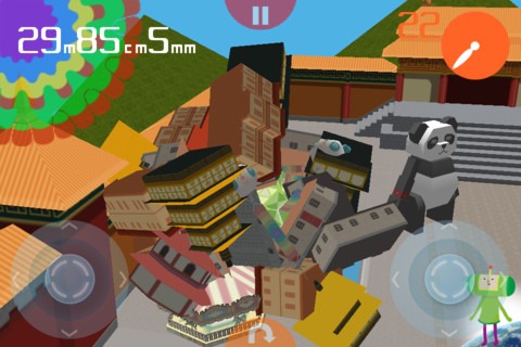 Namco have released another Katamari title for the iPhone: Katamari Damacy 2, which crosses over not only with Pac-Man (just like Katamari Amore), but also with Galaga and Tekken. This is in the form of downloadable stages, which Namco Bandai are releasing in packs. They’re broken up like this: Roll through the World pack: John’s room South America ruins North Africa East asia palace Cosmos Center Western Europe Pac-man Roll through time pack: Secret Laboratory Rome Coliseum Cave of Origin Western Town Age of Discovery Port town Cosmos Colony Tekken Roll through the city pack: Kids room Suburbs High school Shopping mall City Square Big City Galaga