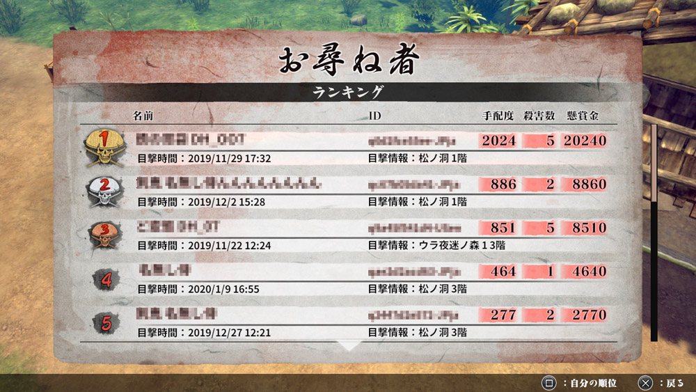If one person is set to ‘Co-op’ and the other to ‘Fight’, it will be treated the same as if both chose ‘Fight’. However, by attacking a ‘Co-op’ player, your samurai will become ‘Wanted’ and players who kill you will get reward money. The more you kill, the higher your Wanted value, and you can see a ranking of Wanted players on the noticeboard. Finally, here’s a look at weapons returning from past Way of the Samurai games: Takefuji Biteikotsu Batsuichi Ashura Katana Kami: A Way of the Samurai Story will be released on the Nintendo Switch, PlayStation 4, and PC on February 20, 2020. Check out English screenshots in our previous post here, and you can find the game’s official English website here.