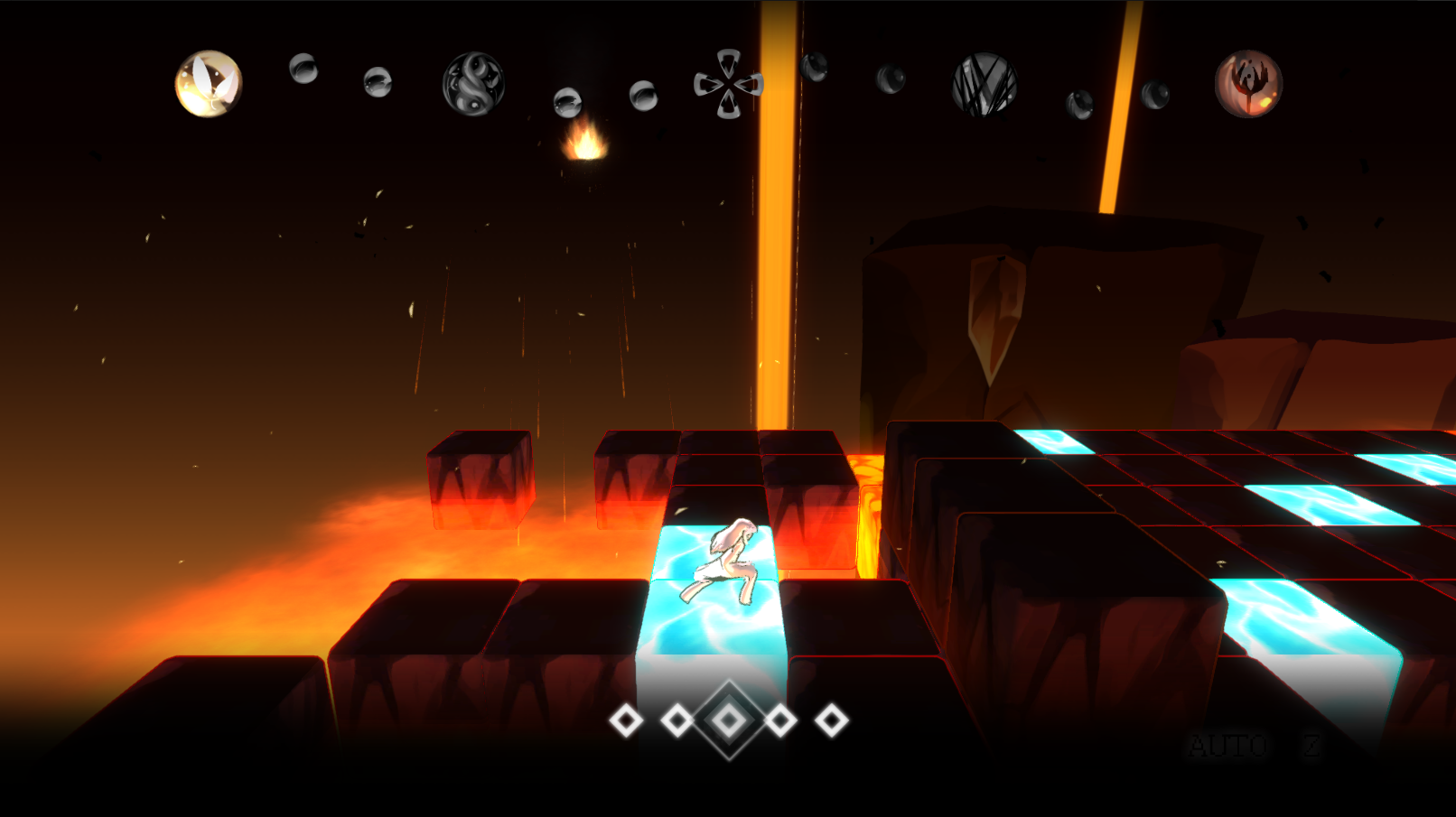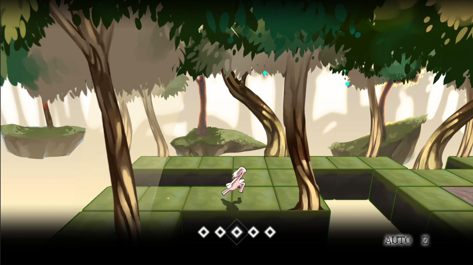 Players will have a dark and light form, with the dark side able to destroy blocks while the light side creates a bridge of vines. Using these powers, the player will have to cross a landscape as pieces of it constantly collapse, staying ahead of the destruction to win.