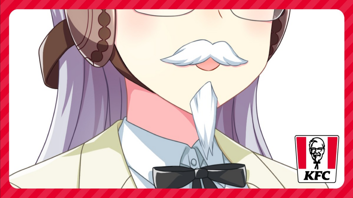 There is virtually no information about this outside of several hashtags and a picture of a mysterious horse girl with Colonel Sanders’s unique facial characteristics. Even those who are unfamiliar with Umamusume, however, should be able to recognize the face as Gold Ship’s. She’s wearing Colonel Sanders’s mustache and glasses. People are using some of the hashtags in KFC’s Tweet to post fanart, comics, and pictures. Aside from artwork of Gold Ship eating fried chicken, there are also people posting photos of a Gold Ship nui in front of an actual KFC order.