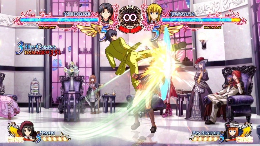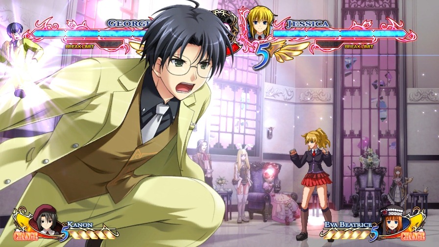 Now that the opening movie is all revealed and done with, it’s back to the usual character spotlights for Ougon Musou Kyoku X. This time, the focus is on George Ushiromiya, whose ability in the game is Patience. When activated, this ability fills your SP gauge while blocking.
