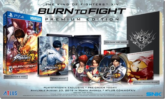 And finally, The King of Fighters XIV’s “Burn to Fight” Premium Edition will also be available for $79.99/CA$99.99. It contains the following: