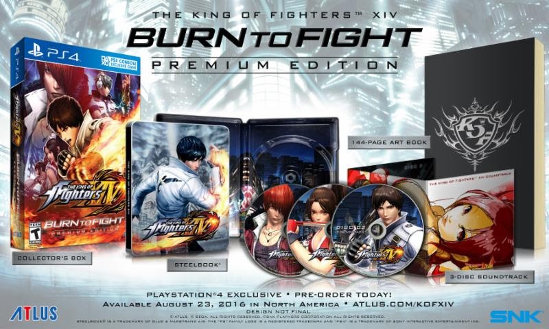 Atlus has revealed The King of Fighters XIV Burn to Fight Premium Edition for North America. The limited edition bundle will come with the PlayStation 4 game, a three-disc soundtrack with over 60 songs from the game, 144-page art book, SteelBook case for the game, and a collector’s box. The SteelBook case is identical to the one that is offered as a launch edition bonus. Deep Silver has not yet said if it is preparing a The King of FIghters XIV Premium Edition for Europe.