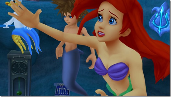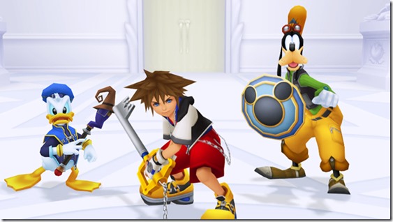 Kingdom Hearts 1.5 HD Remix tweaked the combat system a bit. You can control the camera with the right analog stick and the menu has been scaled down to three options: attack, magic, and item. Reaction commands introduced in Kingdom Hearts II are used for special attacks like Sonic Blade. When you see a giant triangle icon over an enemy you can execute action abilities. In the pause menu, there is also an option for “Final Mix” difficulty level which the game was set on. A representative from Square Enix reiterated that features in the Japan-only release, Kingdom Hearts: Final Mix, are included for the first time in North America. Kingdom Hearts: Final Mix has an extra boss, one of the hoodie wearing members from Organization XIII and new cutscenes. I played through a couple of challenges in Olympus Coliseum too to get a better feel for combat. The camera control tweaks and reaction commands make combat more fluid. Kingdom Hearts also looks sharper on PlayStation 3, but the Disney and Square Enix mashup is essentially the same game from over a decade ago with a simple and clean story.