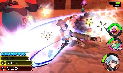 Kingdom Hearts 3D: Dream Drop Distance lets players control Sora and Riku. The two keyblade wielders aren’t alone either you have animal buddies called Dream Eaters. Screenshots show Sora riding the Wonder Nyah and using the Harilion (that’s something like Needle Lion) as a flail. Riku calls out the Yagihorn, which is a goat with two horns.