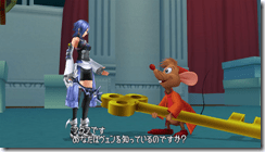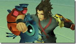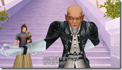 Birth By Sleep has new worlds (Stitch, Cinderella) and characters like the mustached fellow below. His name is Master Eraqus and Japanese blogs and forums are buzzing that he is a tribute to Hironobu Sakaguchi, the creator of Final Fantasy. Seems like a harsh tribute considering Master Eraqus, another keyblade user, lives in the Land of Departure.