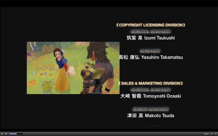 The games shown in the credits are, in a way, comparable to those included in Kingdom Hearts HD 1.5 Remix. One numbered game (Kingdom Hearts 2), one relatively important spin-off game (Birth by Sleep) and one less important spin-off game (Coded, although, perhaps like in the case of 358/2 Days, Square will only include cutscenes). Is this a hint at the contents of a potential Kingdom Hearts 2 HD compilation? W know one is probably on the way.