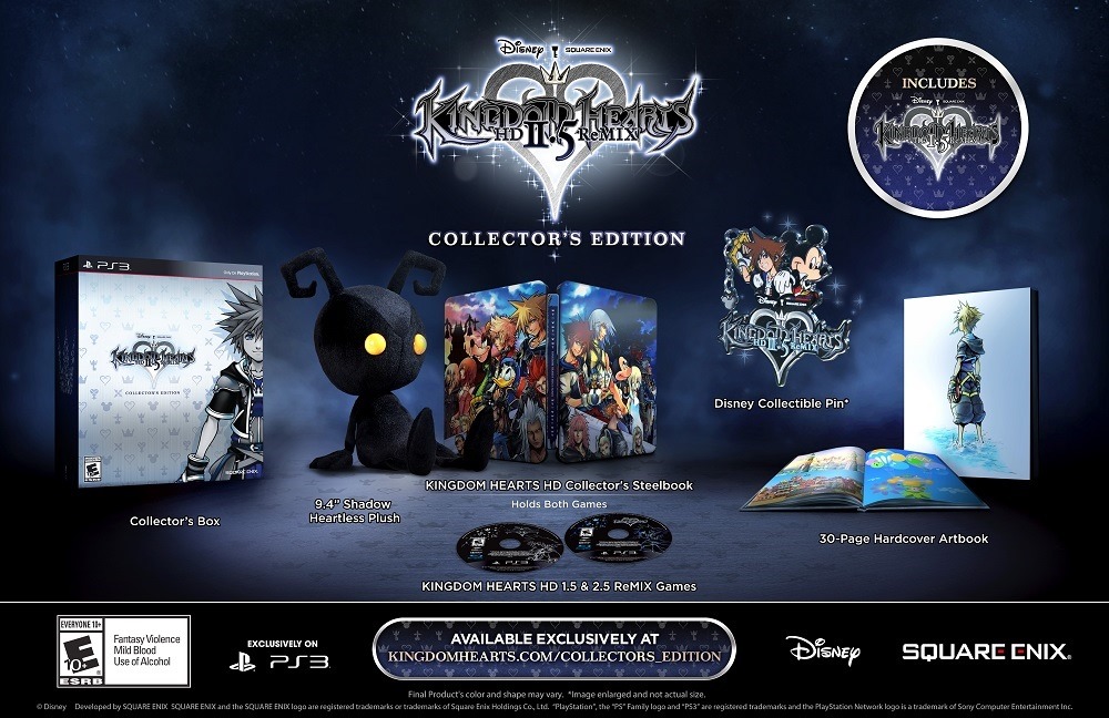 Square Enix is making a collector’s edition for Kingdom Hearts HD 2.5 Remix which includes Kingdom Hearts HD 1.5 Remix and Kingdom Hearts HD 2.5 Remix packed in a steelbook case. That covers all of the Kingdom Hearts saga up to Kingdom Hearts 3D: Dream Drop Distance.