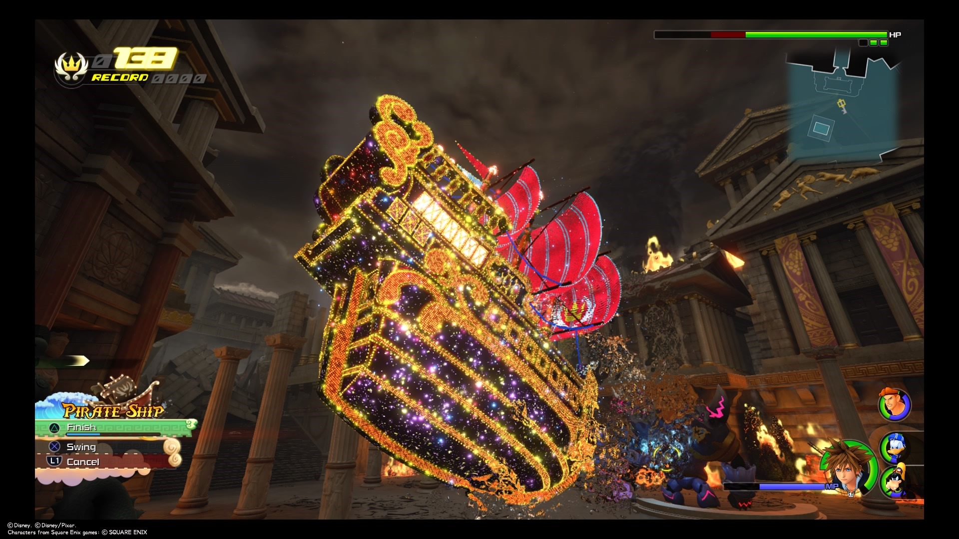 With Sora temporarily reset and in desperate need of finding himself, he heads with Donald and Goofy to Olympus. Disney’s Hercules is a safe place for the crew, even though it is an area that has certainly been home to many hazards. But we’ve seen it in every game except Kingdom Hearts 3D: Dream Drop Distance. Sora has seen Hercules beaten down and getting back up again, and watched the demigod’s training regimen. Who better to remind him of what it is like to be a hero? It provides a perfect impetus to pick up the pieces and start learning what is necessary to summon up the strength to protect the people who matter. Its familiarity means it is also a good place for players in general to begin picking up KIngdom Hearts III and understanding what exactly lies ahead for Sora. While the Disney adaptation of Hercules might not have the same instant recognition as something like Aladdin, Frozen, The Lion King, or Toy Story, the myth of Hercules is fairly common knowledge. The character is mostly recognizable, even if someone isn’t aware of Kingdom Hearts or the Disney adaptation. Even if it is still new to someone, it relies on familiar and easily recognizable concepts of “good” versus “evil” and a struggle of ordinary people against gods. It makes it easy to rally behind Sora, Donald, Goofy, and Hercules.