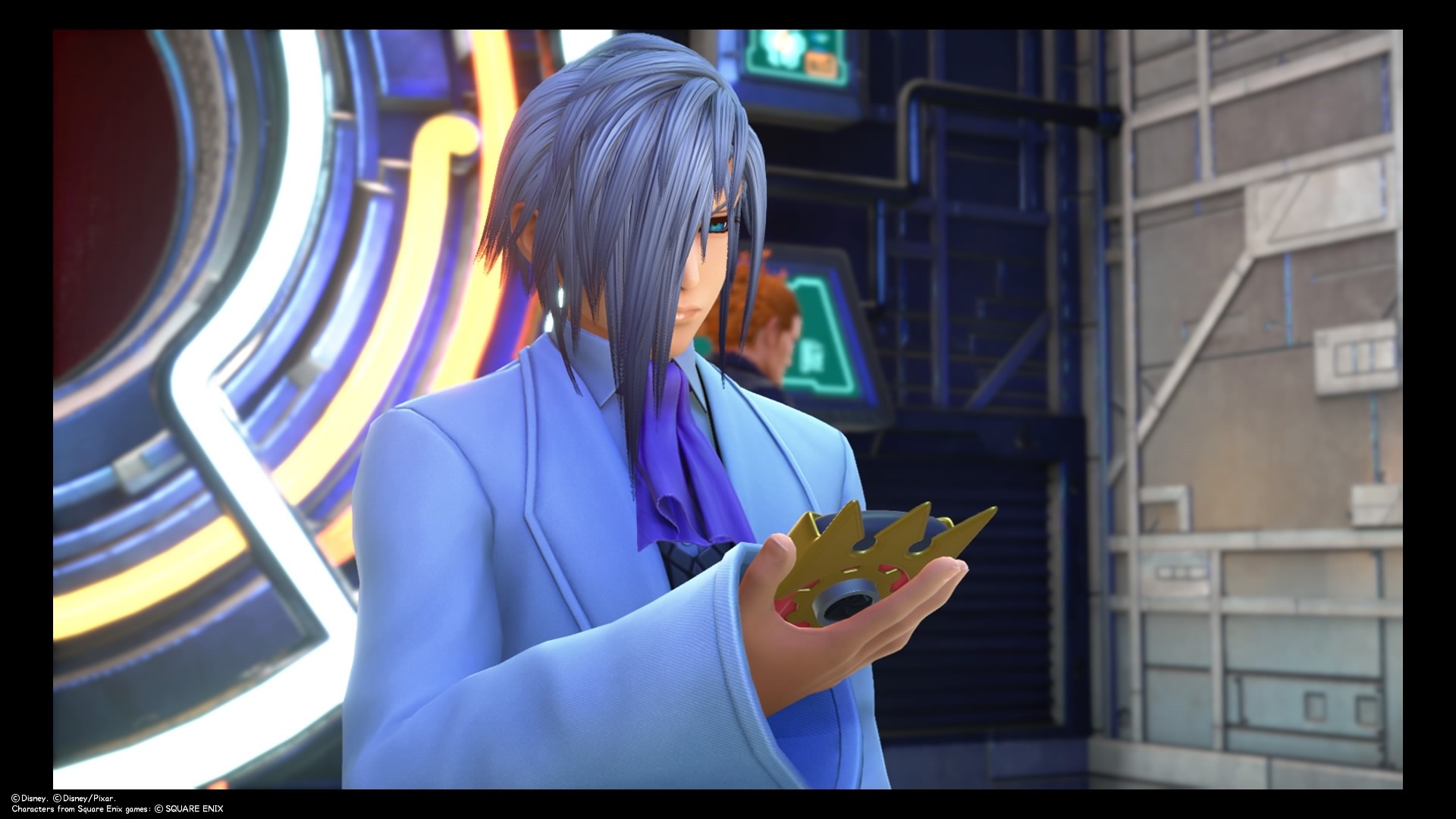Kingdom Hearts III kicks things off in a rather brilliant way. Within the first two hours, we see opposite ends of the Organization XIII spectrum. Everything kicks off with Xigbar, the Rank II member who appears in Thebes to goad Sora. When things left off in Kingdom Hearts 3D: Dream Drop Distance, he revealed he was firmly on Xehanort’s site and dedicated to the cause of collective vessels, something he is still obviously up to now. But, true to his personality, he’s rather arrogant, confident, and not exactly forthcoming. Rather, meeting him is setting up things to come. Sora almost immediately is reintroduced to another former member, Ienzo, offering players new and old a chance to see how different Organization XIII members can be. But while Xigbar’s foreshadowing feels forboding, Ienzo is far more positive. The recompleted Nobody of Zexion is working alongside another past opponent, Aeleus/Lexaeus, for the good of the cause. He offers insight into proper Gummiphone usage, helps with getting into the computer in Twilight Town, and provides all sorts of technological support and research. It is quite a contrast from the child and man we saw in past games. In Kingdom Hearts: Birth by Sleep, he was a quiet child that was smart, but also seemed quiet and maybe even a bit hesitant. As Zexion, he was critical, emotionless, and logical. But the Ienzo here is warm and friendly. He freely shares knowledge, rather than lording it over anyone. He even smiles. (This is actually a big deal.)