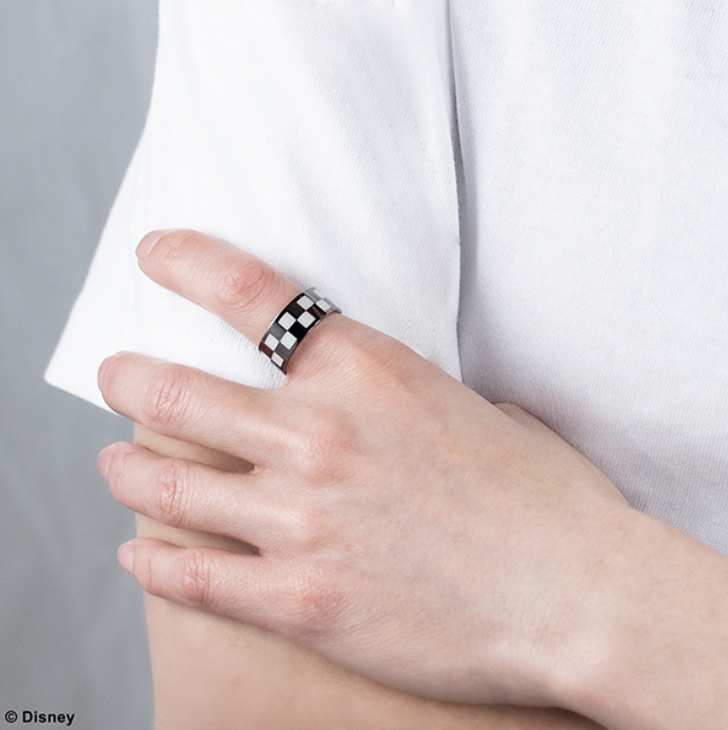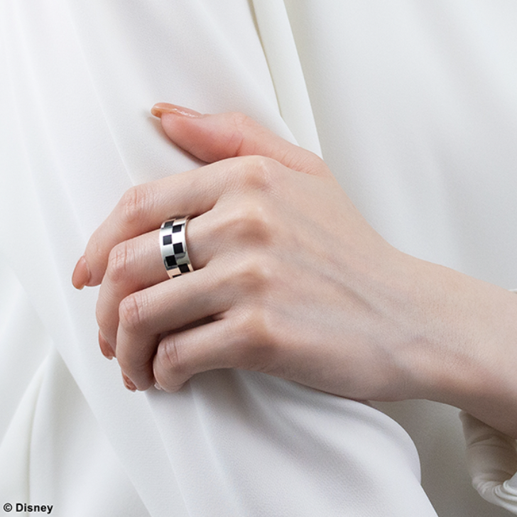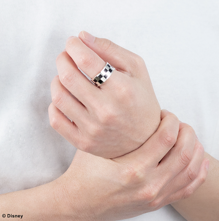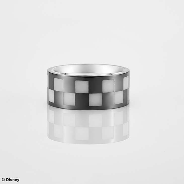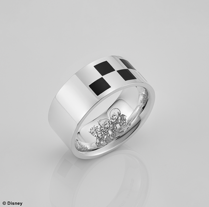 Square Enix is working on new Kingdom Hearts jewelry. This latest one comes in two variants and hides a secret. Two Kingdom Hearts Roxas ring versions will appear in Japan on November 11, 2023, and each one also pays tribute to Axel and Xion via hidden art. The items will cost 24,200円 (~$172) each. The Square Enix worldwide storefront doesn’t offer listings for either one yet. However, it often also offers these kinds of items not long after the Japanese announcement. Aside from the color variations, the two rings are identical. Both Kingdom Hearts rings feature a checkerboard design on the outside that is inspired by Roxas’ clothing. On the inside, a picture of Axel, Roxas, and Xion eating sea-salt ice cream as they did in Kingdom Hearts 358/2 Days is engraved into the band. They are also each made of 925 sterling silver. You can get them in specific sizes ranging from 7-23. The difference is one is just silver, and the other features a black coating. Here’s how the standard silver one looks: