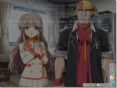 While KiraKira’s characters may not be the most original to grace the digital pages of a visual novel, the story never lets up and keeps you thoroughly entertained throughout. Somewhere along the way, I even found myself drawing parallels to Suda51’s famous “Punk’s not dead” speech from GDC ’08.
