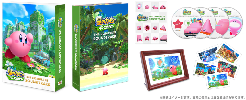 The Complete Soundtrack will also have a photo frame that contains a music box playing a short version of the theme song. HAL Laboratory will also provide five swappable photo cards taken from the game. The large package will have an all-in price tag of 14,880 yen (~$98), which includes tax and shipping, but it will be only available until May 7, 2024, or when the company has reached its production limit, whichever comes first.