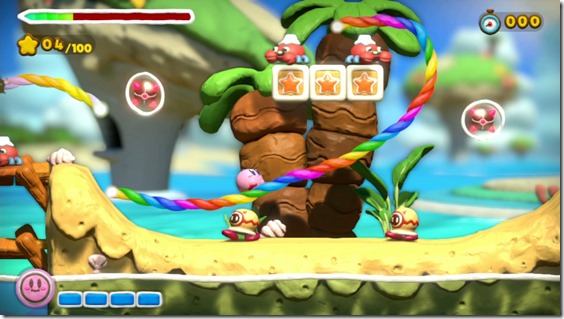 Looking for a game that combines the aesthetics of Earthbound’s Player’s Guide with the tricky, stylus-based gameplay of Kirby: Canvas Curse? Well, Kirby and the Rainbow Curse is your huckleberry. While Star Fox and Metroid seem to pave the way for new technology, Kirby seems to be Nintendo’s leader in aesthetic experimentation. At the very least, Rainbow Curse is the perfect visual complement to Yoshi’s Wooly World, both of which masterfully showcase the Wii U’s talent at creating eerily convincing textures. The basics of Rainbow Curse are more or less the same as its predecessor: instead of controlling Kirby directly, you propel the puffy-pink hero along paths made of rainbow yarn drawn directly onto the stage using the gamepad and stylus. These lines are like escalators—Kirby will move in the direction they were drawn.