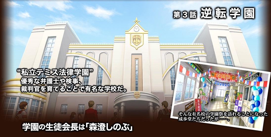 He was originally a lead vocalist and guitarist of his own rock band called The Gavinners, but since his band has disbanded, he’s devoted himself to his work as a prosecutor. Klavier is known for his air guitar motions and poetic expressions.   The third case is called Turnabout Academy, which takes place in Juniper’s school, called the Themis Law School.