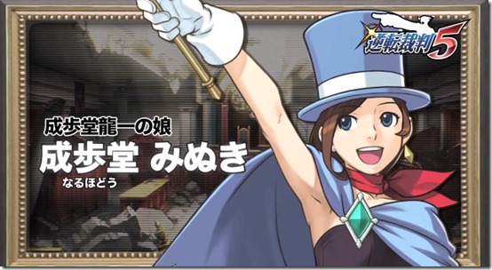 Trucy Wright, the adopted child of Phoenix Wright, originally made her debut in Apollo Justice: Ace Attorney, as a talented magician who held performances to make money. In Ace Attorney: Dual Destinies, she’ll be spending a lot of time at the Wright Anything Agency, where she’ll be waiting to talk to you in between cases. Scenario director Takeshi Yamazaki also mentions that although he can’t share too much for now, she’ll have a bigger role in the game and will have her own scenario, where she will be seen participating in the action.