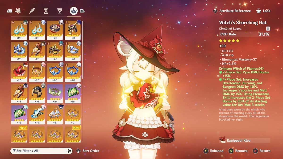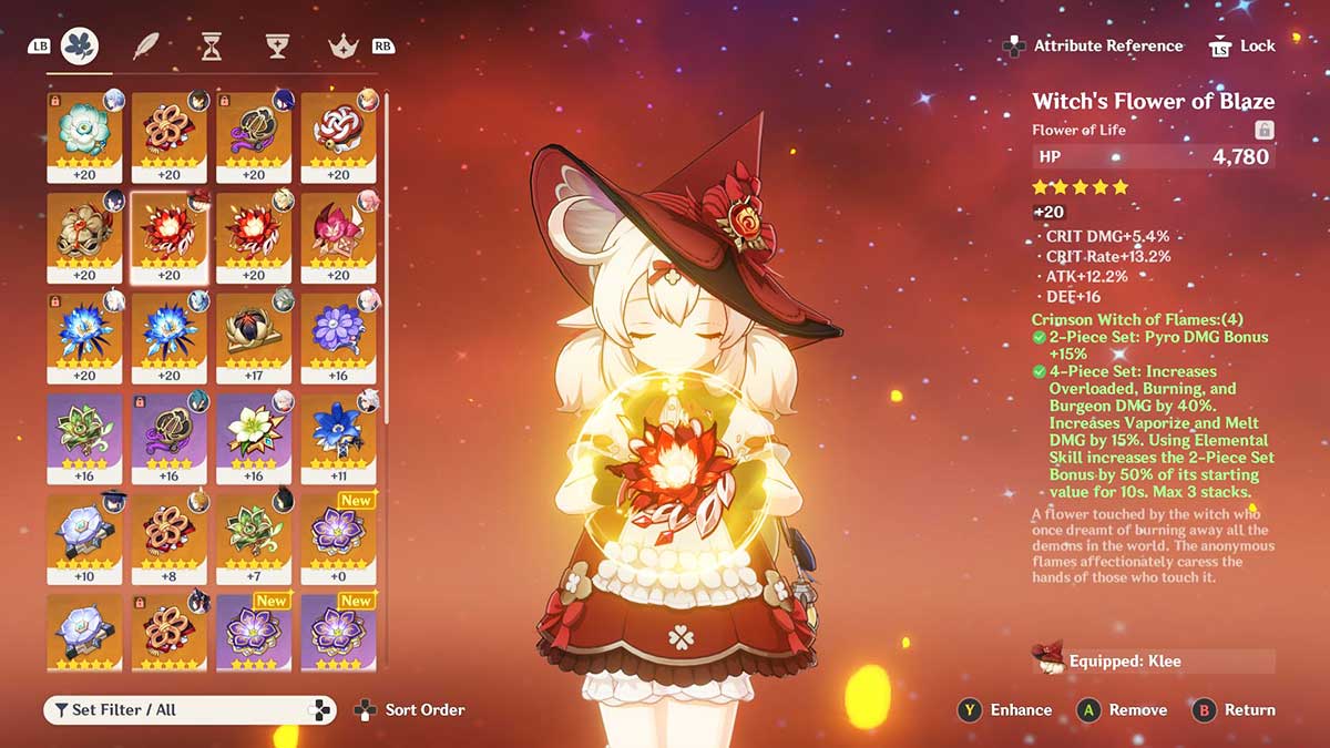 There are many Artifacts for Klee to choose from in Genshin Impact that can expand her DPS potential. With the right build, the explosive character can leave enemies engulfed in a wall of flames. But really, there’s one set that stands out. It’s Crimson Witch of Flames, which has been around for years.