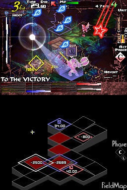 I briefly checked out Knights in the Nightmare, Sting’s deviant DS game. Like the trailers suggest Knights in the Nightmare is an effective blend of bullet dodging and grid based tactical combat. But, you don’t move troops on an isometric board or anything like that. You control a wisp, a glowing spec, by dragging it with the touch screen. The wisp can breathe life into otherwise soulless soldiers by touching them. A blue light emits from an awakened soldier showing you the attack direction. Let go of the stylus and the warrior unleashes an attack. Menus on the side allow you to equip your lifeless troops with weapons by drag and drop deliveries. While the tactical combat is going on glowing orbs scatter in the background. If you touch one the time meter depletes and the wisp loses rounds to finish the battle. Sting doesn’t skimp on the time sucking orbs. In the demo the screen was full of them and it was like navigating through an asteroid field. Unlike other strategy RPGs you can’t have a snack while selecting commands, Knights in the Nightmare is fast and furious. There are some very cool concepts introduced in Knights in the Nightmare, but the Nintendo Channel demo barely scratches the surface of the system. Sting’s game is intriguing and I think we should start bothering Atlus to pick this up. Actually, I wouldn’t be surprised if Atlus is already working something with Sting out since lately Atlus is publishing nearly everything Sting makes. Images courtesy of Sting.