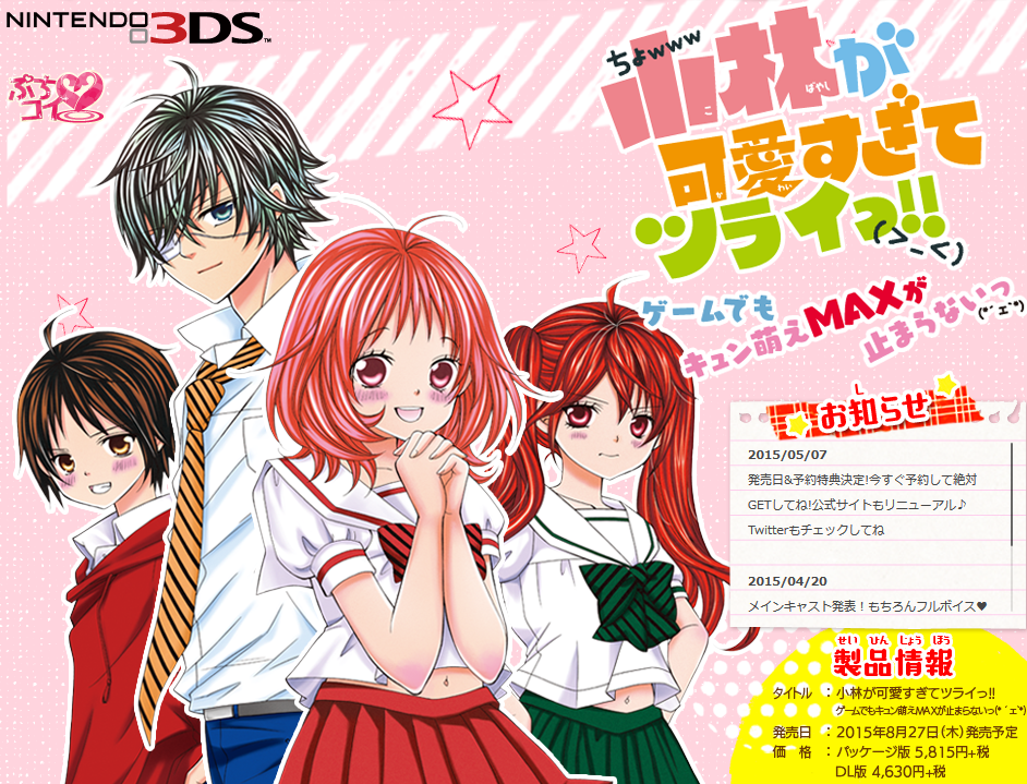 Kobayashi ga Kawai Sugite Tsurai!! has been going on as a manga since 2012, and has had some OVAs for the series, too. Next on the list is a new game for the Nintendo 3DS by Happinet Games. The official website shares a first look.