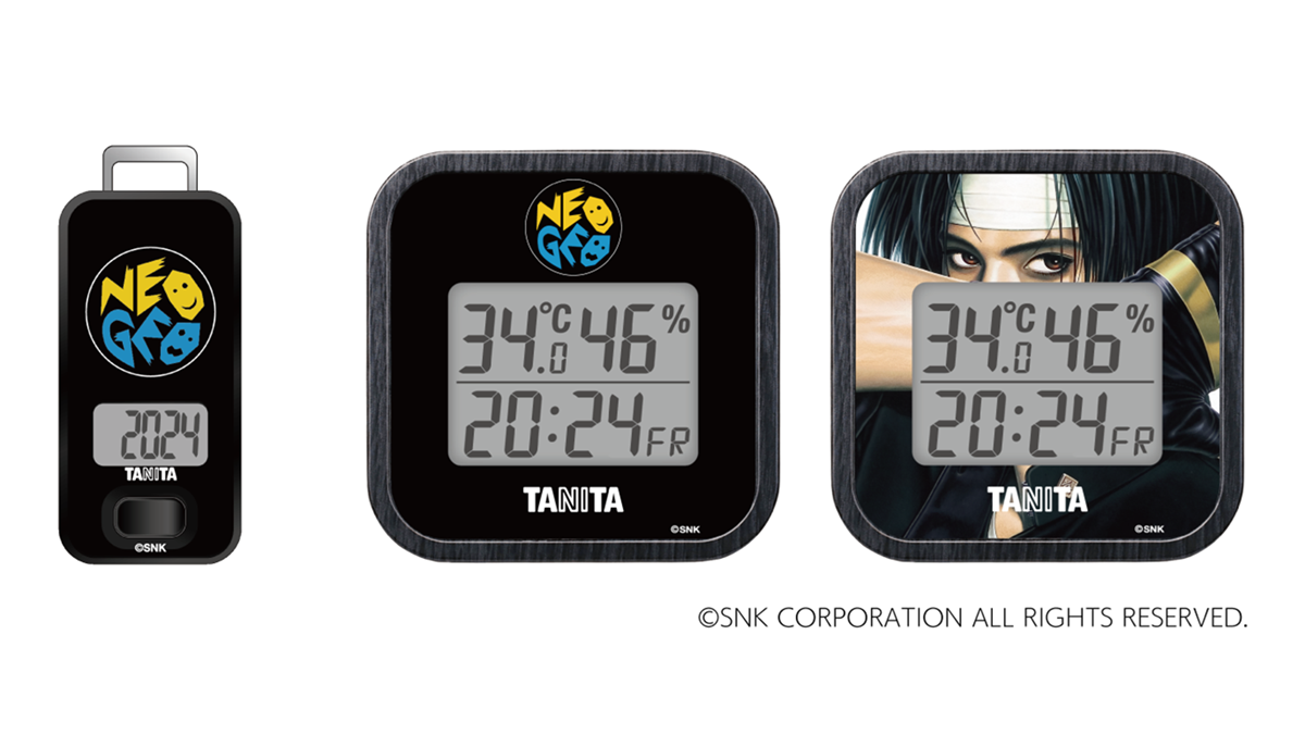 The other equipment includes a pedometer equipped with a 3D sensor featuring motifs inspired by the Neo Geo arcade system, as well as a digital thermo-hygrometer available in a Neo Geo model and a The King of Fighters model featuring character Kyo Kusanagi. Both the pedometer and thermo-hygrometer cost 3,520 yen (~$23) each.