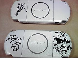 They autographed PSPs. Kojima’s signature is on the top one. Shinkawa signed and drew a picture of Snake for his.