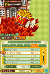 Players that stop by a McDonalds in Japan and hook up the Mac de DS service can download three sets of McDonalds themed items between November 12 to 29.