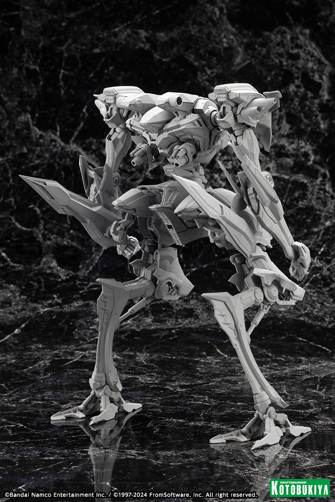Details about the new model kit are still sparse as of this prototype reveal. While most prior series model kits like Nineball Seraph and Noblesse Oblige share the same 1/72 scale and thus support interchangeable parts, Kotobukiya has yet to confirm the scale for its upcoming Armored Core 6 kits. The company has not announced a release window for this Steel Haze model kit either.