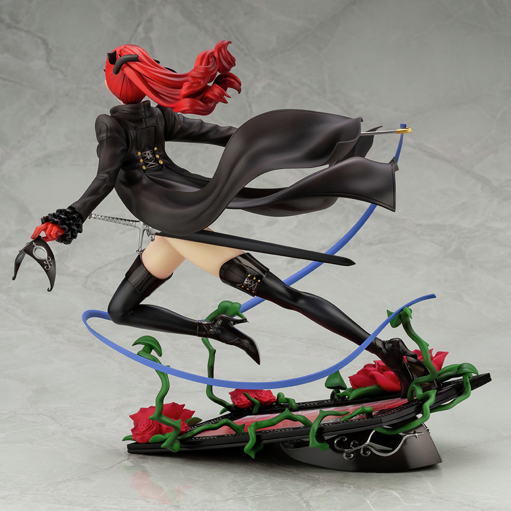 The scale figure of Kasumi Yoshizawa as she appears in Persona 5 Royal has a dynamic pose on a corridor with roses along the edges. She’s also holding a gymnastics ribbon in one hand and her mask in the other. The figure originally came out in November 2020 and at the time, it was available for 17,380 JPY. Her pose makes it look like she’s running, while looking off to the side, which is actually a direct parallel to the ARTFX Persona 5 Joker figure.
