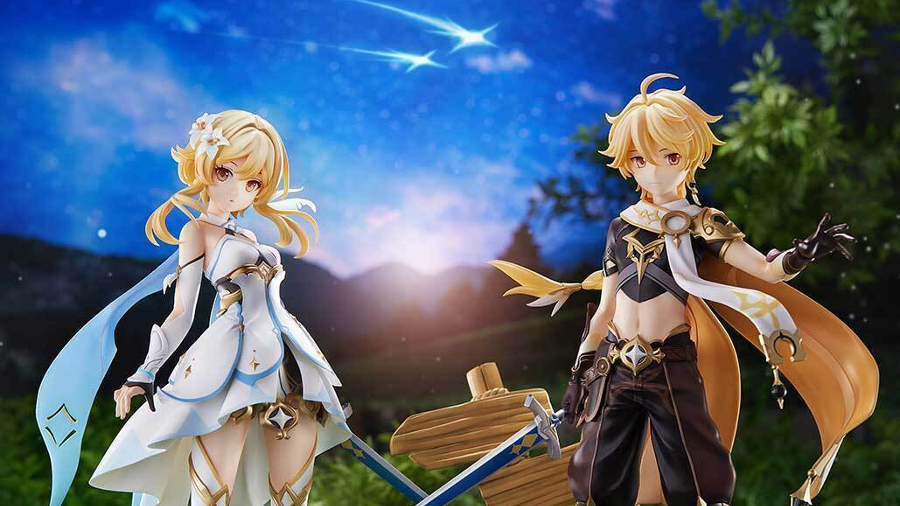 Kotobukiya will be selling figures of the male and female Traveler from Genshin Impact. While pre-orders are not yet open, the company announced that the figures will be available for pre-order in the “near future.” The figures are 1/7 scale. Kotobukiya has not announced an official price for either figure. The 1/7 scale figures recreate both versions of the Traveler protagonist character from Genshin Impact. Aether, the male version, and Lumine, the female version, are twin siblings that travel the universe. At the beginning of the game, players are required to choose one of the characters as the protagonist. Notably, the figures are based on each character’s character card design. Aether, with his arm outstretched, wields his sword and wears a flowing cape. Lumine wields the same sword and wears her white dress. Both figures feature intricate details, such as Aether’s earrings, Lumine’s floral hairpins, and various metal buckles and accessories. Furthermore, each figure comes with its own stand resembling the terrain of the game’s starting area, with a wooden signpost, fences, and grass. You can get a better look at each Genshin Impact Traveler figure in the screenshots below: